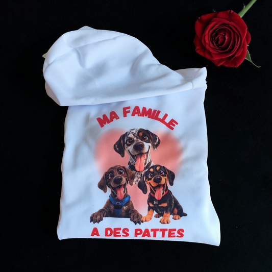 Sweat personnalisé « Ma famille a des pattes » – avec la photo de tes animaux