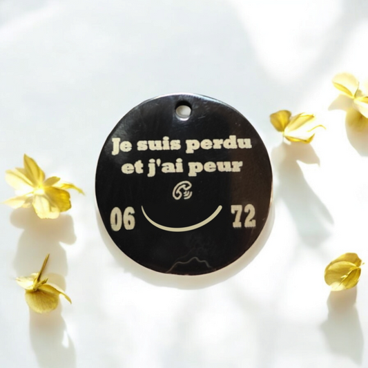 Médaille d'identification ronde ornée de strass